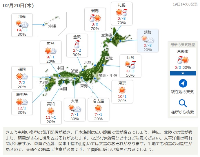 2月5日(水)の話題は「寒波」
